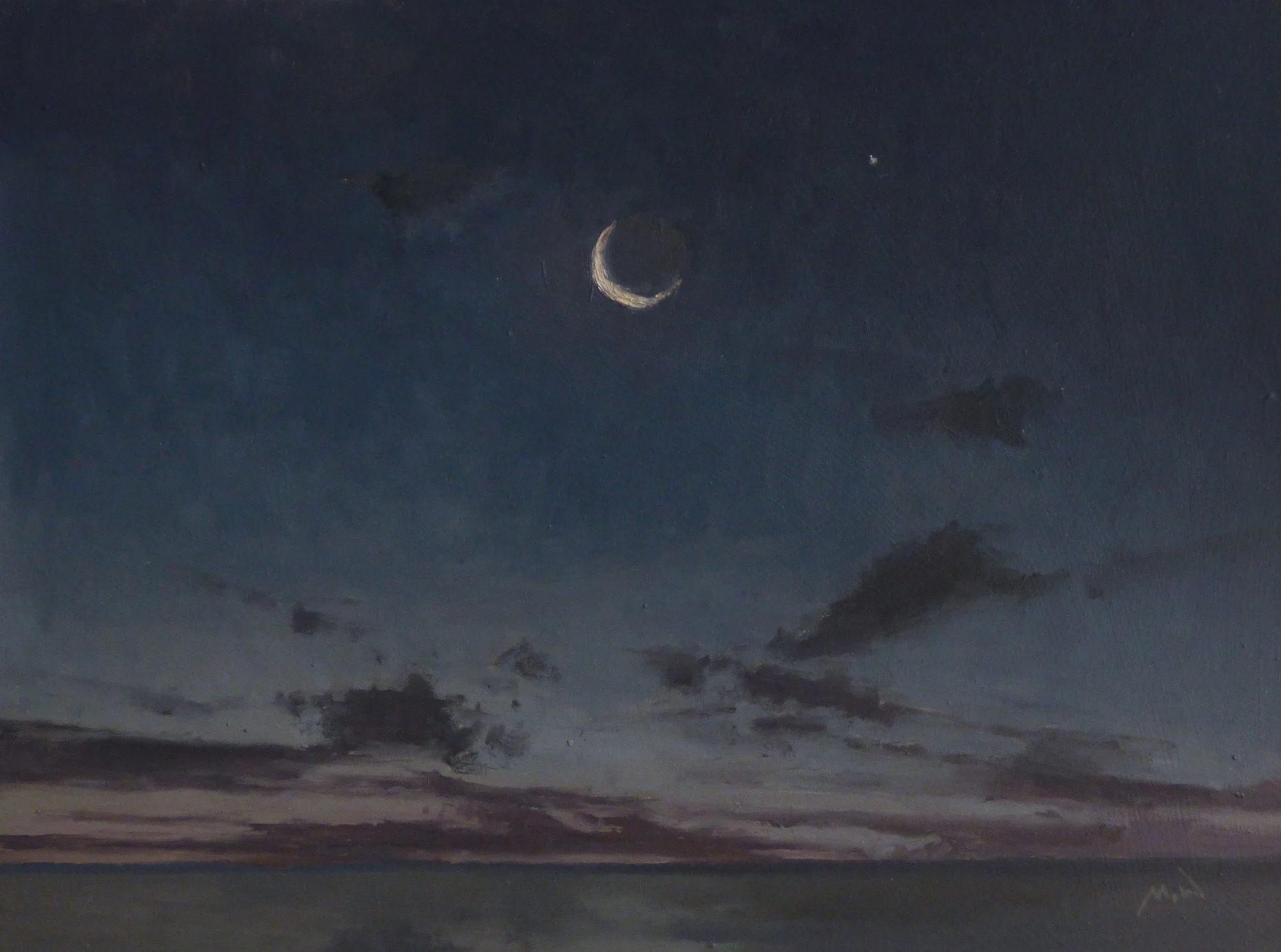 Painting for Max is about holding onto moments where he experiences something profound; a powerful feeling that usually arises from light in the landscape, although he finds subjects everywhere from the west end of London to his kitchen. His paintings can take weeks or months to complete, over that time he fights a battle with the paint surface to translate and preserve the emotion he experienced when he first saw the subject.